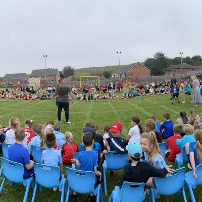 We met as a whole school on the field to cheer on the houses.